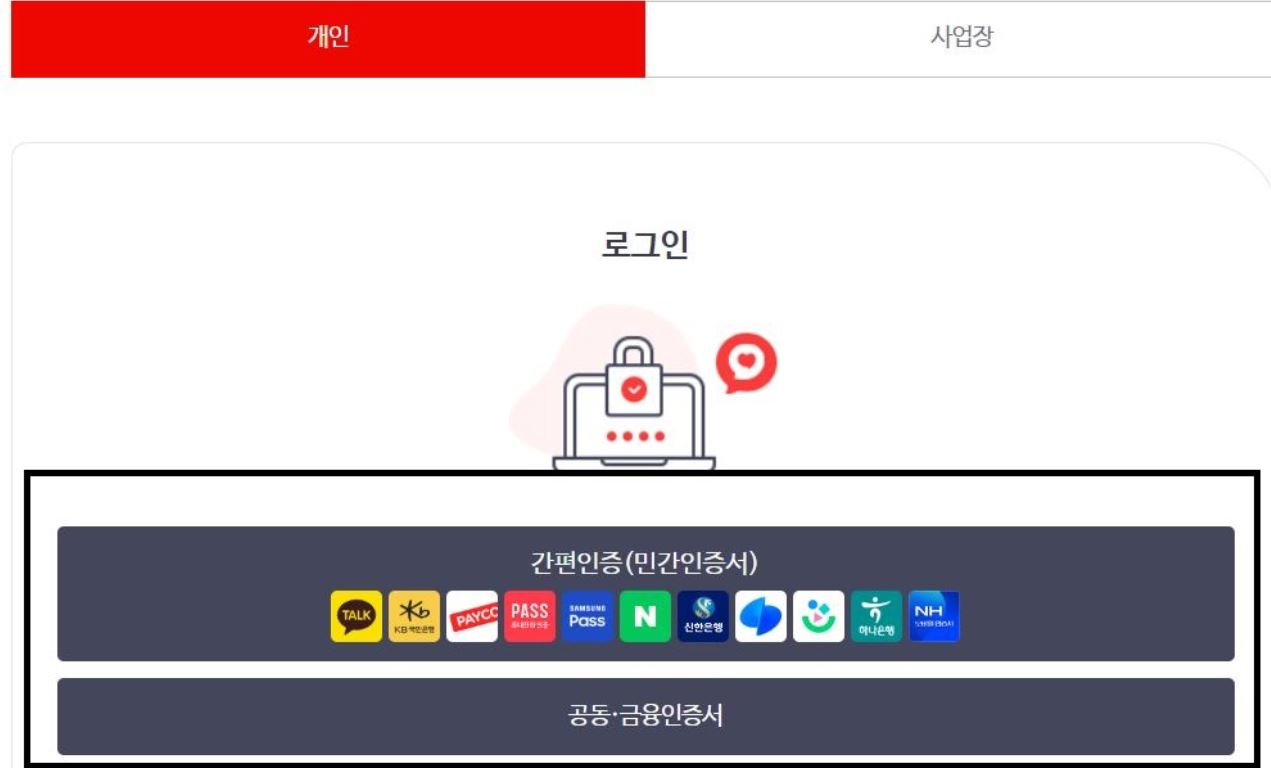 3. 모두 클릭을 하여 주셨으면 모두 로그인 인증을 하셔야지 환급금 조회를 하실수 있으신데요. 여러분들이 가지고 계시는 인증서로 해주셔도 되며 간편인증으로 카카오부터, 국민, 페이코, PASS , 네이버 등 다양하게 있으니 선택하여 로그인 하여 주세요.