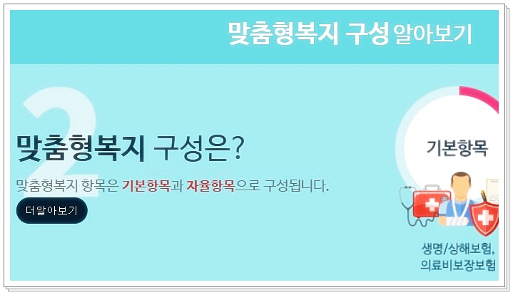 1. 건강관리 혜택 : 건강검진, 의료비 지원, 체력단련비 등 본인과 가족의 건강을 관리할 수 있는 다양한 서비스 제공